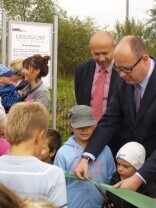 Gdańsk, Zakoniczyn. Otwarcie "Ekologicznego Placu Zabaw", który powstał z komponentów pochodzących recyklingu. Fundatorem placu jest Zakład Utylizacyjny w Gdańsku. Nz. Prezes Zakładu Utylizacyjnego Sp. z o.o. Wojciech Głuszczak i Prezydent Gdańska Paweł Adamowicz