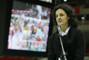 Ergo Arena, hala na granicy Gdańska i Sopotu, działa już pół roku. Na terenie hali zorganizowana została konferencja prasowa podsumowująca dotychczasową działalność i przedstawiono plany na 2011 rok. Nz. Dyrektor Biura Marketingu i PR Ergo Hestii Katarzyna śliwińska
