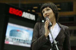 Ergo Arena, hala na granicy Gdańska i Sopotu, działa już pół roku. Na terenie hali zorganizowana została konferencja prasowa podsumowująca dotychczasową działalność i przedstawiono plany na 2011 rok. Nz. Prezes Ergo Arena Magdalena Sekuła