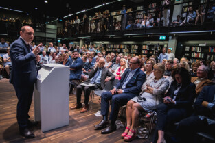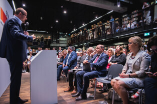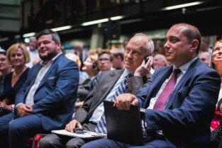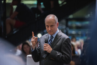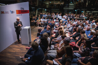 Gdańsk. ECS. Etyka Solidarności. Wykład Michaela J. Sandela. Nz. Paweł Adamowicz Prezydent Miasta Gdańska
