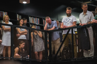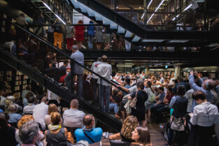Gdańsk. ECS. Etyka Solidarności. Wykład Michaela J. Sandela. Nz. Dyrektor ECS Basil Kerski (po prawej)