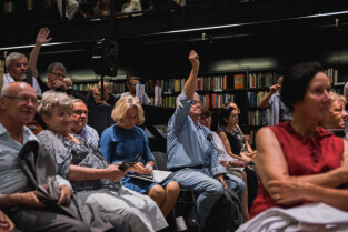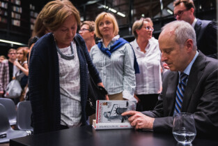 Gdańsk. ECS. Etyka Solidarności. Wykład Michaela J. Sandela. Nz. Joanna Muszkowska-Penson ( po środku)