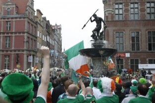 Kibice z Irlandii i Hiszpanii na ulicach Gdańska w dniu meczu obu drużyn na gdańskim stadionie.