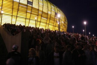 Gdańsk, Plac Zebrań Ludowych. Strefa Kibica (Fun Zone) podczas Mistrzostw UEFA Euro 2012. Mecz Polska-Czechy, który obejrzało blisko 40 tys. kibiców. Spotkanie zakończyło się wygraną Czechów 1:0.