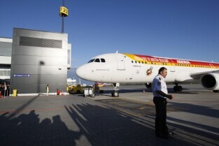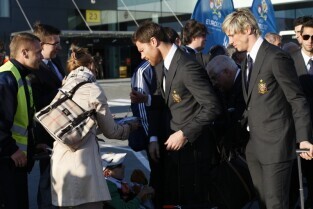 Gdańsk, Port Lotniczy im. Lecha Wałęsy. Przylot reprezentacji Hiszpanii w piłce nożnej na mistrzostwa UEFA Euro 2012 w Polsce. Reprezentację oficjalnie powitała delegacja z Wojewodą Pomorskim Ryszardem Stachurskim, Marszałkiem Woj. Pomorskiego Mieczysławem Strukiem i Prezydentem Gdańska Pawłem Adamowiczem