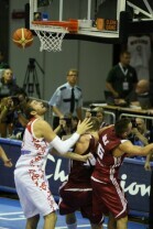 Gdańsk, Hala Olivia. Eurobasket 2009 - Mistrzostwa Europy w Koszykówce. Mecz fazy grupowej Łotwa - Rosja.