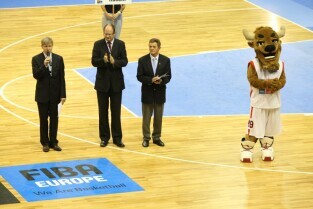 Gdańsk, Hala Olivia. Eurobasket 2009 - otwarcie mistrzostw Europy w koszykówce, którego dokonali Prezydent Miasta Gdańska i komisarz FIBA Eugeniusz Kuglar.