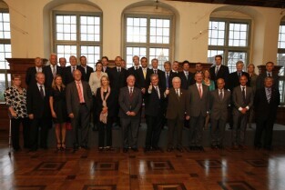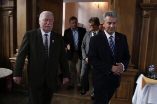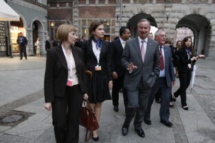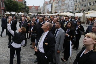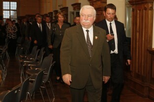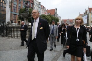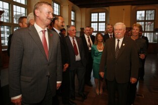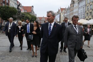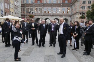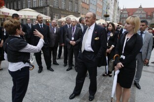 Ministrowie ds. transportu z krajów członkowskich Unii Europejskiej spotkali się z byłym Prezydentem RP Lechem Wałęsą. Wizyta ministrów związana jest z nieformalnym posiedzeniem w ramach polskiej prezydencji UE. Gdańsk, Zielona Brama
