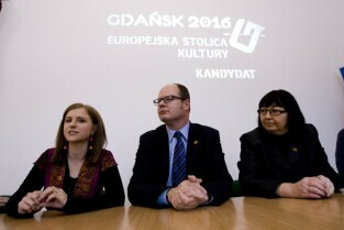 Konferencja prasowa, podczas której gdańska delegacja opowiedziała o przebiegu spotkania w Teatrze Wielkim w Warszawie, gdzie dwa dni temu przekonywała Komisję Selekcyjną, że Gdańsk powinien zostać Europejską Stolicą Kultury w 2016 roku