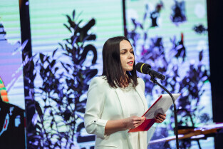 Gdańsk, ECS. Europejska Stolica Wolontariatu. Gala podczas, której Gdańsk przekazał tytuł Europejskiej Stolicy Wolontariatu norweskiemu Trondheim. Nz. Prezydent Gdańska Aleksandra Dulkiewicz