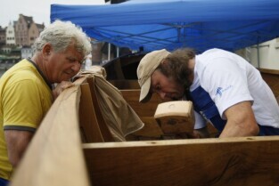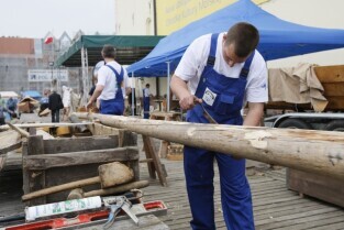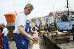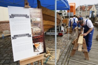 Impreza plenerowa pod hasłem Europejski Festyn Morski, podczas której można było m.in. zobaczyć jak w tradycyjny sposób buduje się łodzie. Gdańsk, Centralne Muzeum Morskie