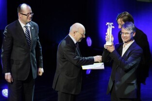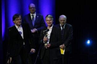 Gala II edycji Gdańskiej Nagrody Literackiej "Europejski Poeta Wolności". Gdańsk, Teatr Wybrzeże. Nagrodę otrzymał Durs Grünbein (nz) z Niemiec za tomik "Mizantrop na Capri"