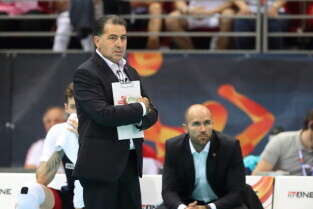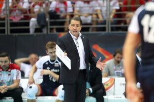 Gdańsk. Mistrzostwa Europy w piłce siatkowej mężczyzn. Mecz Polska - Estonia 3:0. Nz. Trener De Giorgi Ferdinando.