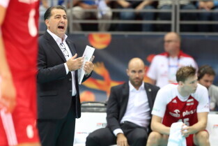 Gdańsk. Mistrzostwa Europy w piłce siatkowej mężczyzn. Mecz Polska - Finlandia 3:0. Nz. Trener De Giorgi Ferdinando.