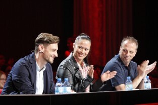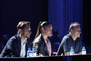 Próba generalna finału konkursu "Eurowizja dla Młodych Tancerzy". Gdańsk, Opera Bałtycka. Nz. jury konkursu, od lewej: Cameron McMillan, Nadia Espiritu, Krzysztof Pastor
