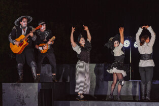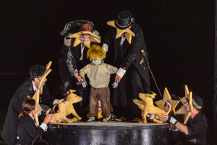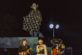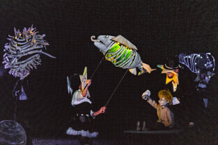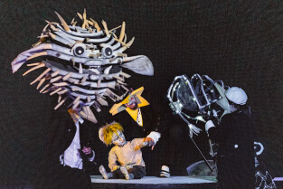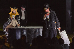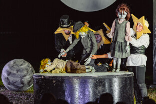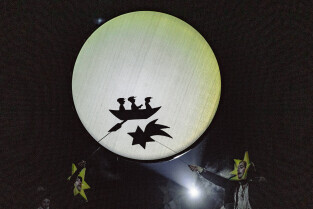 Gdańsk, Park Reagana. FETA. XXV edycja Międzynarodowego Festiwalu Teatrów Plenerowych i Ulicznych. Nz. Theater des Lachens w koprodukcji z Das Weite Theater i Teatrem Animacji „La Luna” (Księżyc)
