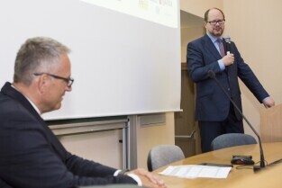 Konferencja "Facebook lustro mediów”. Gdańsk, Wydział Nauk Społecznych Uniwersytetu Gdańskiego. Nz. Prezydent Gdańska Paweł Adamowicz