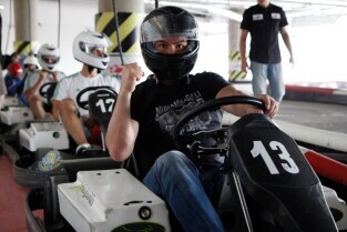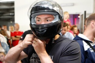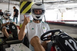 Uroczyste otwarcie Centrum Rereacyjno-Sportowego Fun Arena na stadionie w Gdańsku. Jako pierwsi z atrakcji skorzystali m.in. Prezydenta Gdańska Paweł Adamowicz, Dariusz "Tiger" Michalczewski i piłkarze Lechii Gdańsk. Nz. piłkarz Lechii Gdańsk Piotr Grzelczak.