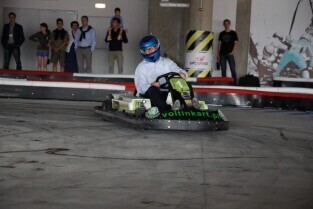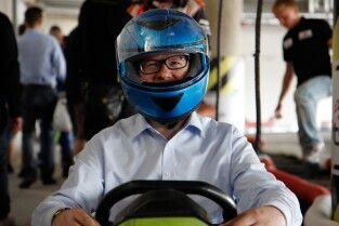 Uroczyste otwarcie Centrum Rereacyjno-Sportowego Fun Arena na stadionie w Gdańsku. Jako pierwsi z atrakcji skorzystali m.in. Prezydenta Gdańska Paweł Adamowicz, Dariusz "Tiger" Michalczewski i piłkarze Lechii Gdańsk. Nz. Prezydent Gdańska Paweł Adamowicz.
