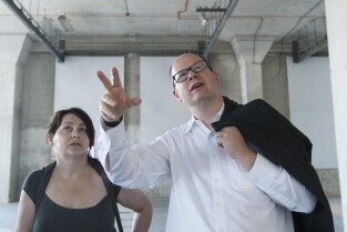 Festiwal Alternativa 2013 - wystawa w Hali 90B Stoczni Gdańskiej, którą odwiedzili Prezydent Gdańska Paweł Adamowicz (nz) i Dyrektor Biura Prezydenta Gdańska ds. Kultury Anna Czekanowicz-Drążewska w towarzystwie Dyrektora Artystycznego Festiwalu Anety Szyłak