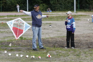 Festiwal Latawca w Gdańsku, na Placu Zebrań Ludowych. Nz. Kamil Legowicz, zwycięzca kategorii "Najwyższy lot Latawca".