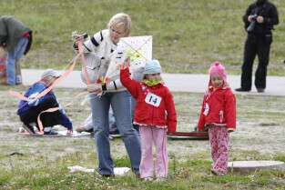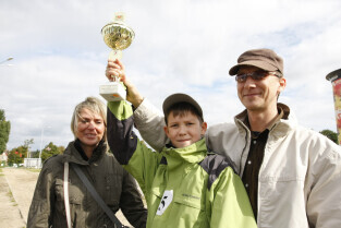 Festiwal Latawca w Gdańsku, na Placu Zebrań Ludowych. Nz. Kamil Legowicz, zwycięzca kategorii "Najwyższy lot Latawca" z tatą Mariuszem i mamą Marzeną.