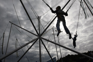 Festiwal Latawca w Gdańsku, na Placu Zebrań Ludowych. Nz. jedna z atrakcji: euro-bungee