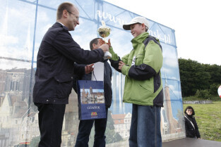 Festiwal Latawca w Gdańsku, na Placu Zebrań Ludowych. Nz. Kamil Legowicz odbierający nagrodę z rąk Macieja Lisickiego (z-ca Prezydenta Gdańska) za I miejsce w kategorii "Najwyższy lot Latawca"