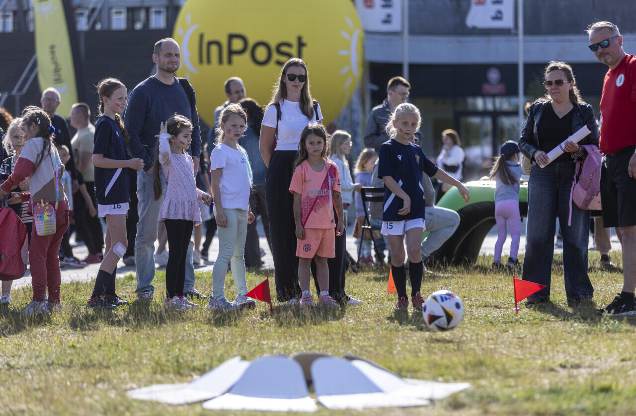 Gdańsk. Z okazji meczu reprezentacji Polski w piłce nożnej kobiet, obok stadionu Polsat Plus Arena odbył się festyn piłkarski dla dzieci pod hasłem "Festiwal Piłkarski dla Dziewczyn".