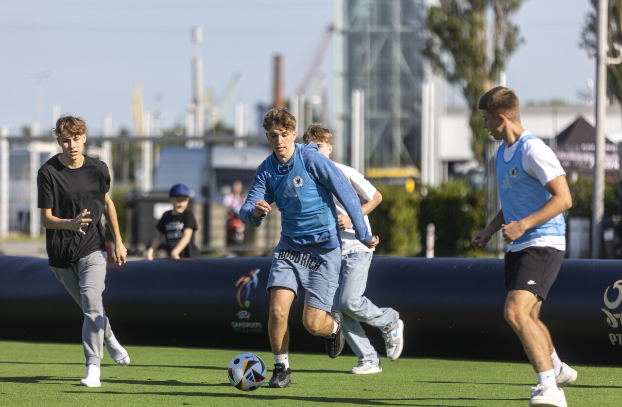 Gdańsk. Z okazji meczu reprezentacji Polski w piłce nożnej kobiet, obok stadionu Polsat Plus Arena odbył się festyn piłkarski dla dzieci pod hasłem "Festiwal Piłkarski dla Dziewczyn".