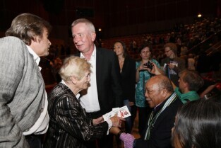 Koncert inauguracyjny Festiwal Solidarity of Arts 2012 pt. "W Poszukiwaniu Muzycznej Doskonałości " z udziałem: Maxim Vengerov, Roman Perucki, Maria Włoszczowska. Gdańsk, Filharmonia Bałtycka. Nz. w środku muzyk Quincy Jones