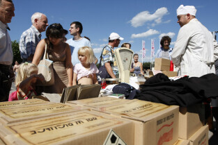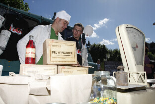 Festiwal Solidarności w 28 rocznicę strajków w Trójmieście. Sopot, Skwer Kuracyjny, 14.08.2008. Nz. rekonstrukcja obwonego sklepu.