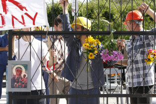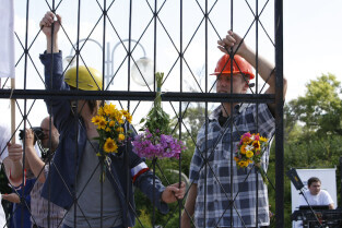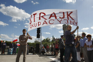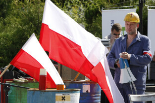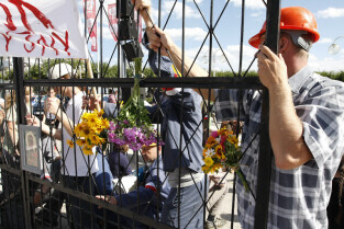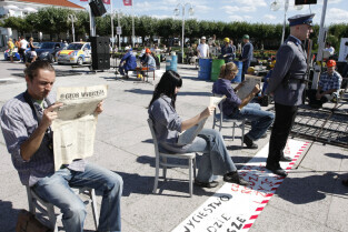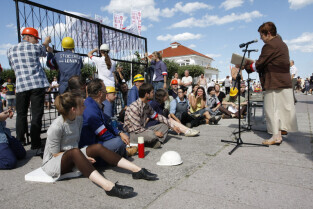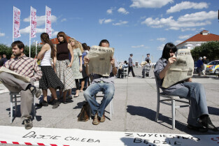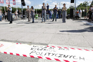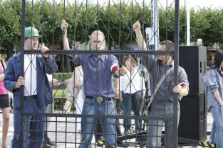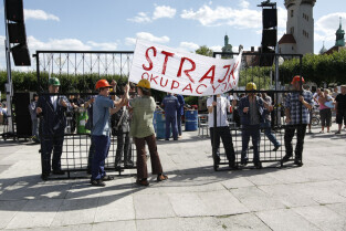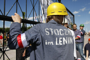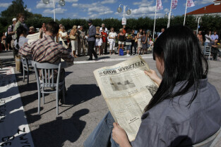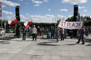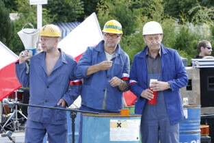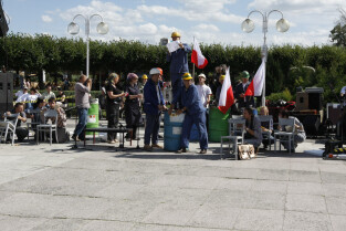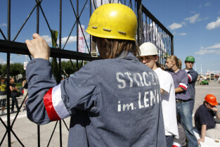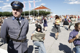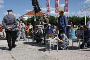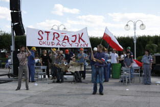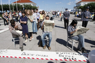 Festiwal Solidarności w 28 rocznicę strajków w Trójmieście. Sopot, Skwer Kuracyjny, 14.08.2008. Nz. przedstawienie przypominające strajki w stoczni w 1980 r.