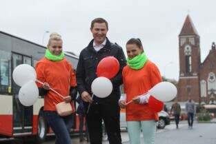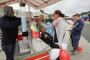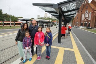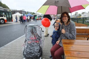 Nowoczesne i zabytkowe autobusy ZKM, muzyka, konkursy i atrakcje dla najmłodszych - w tym malowanie buziek dla dzieci i pokazy baniek gigantów na festynie komunikacyjnym na Pętli Siedlce. Nz Wiceprezydent Gdańska Andrzej Bojanowski z Rodziną