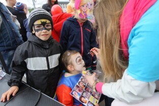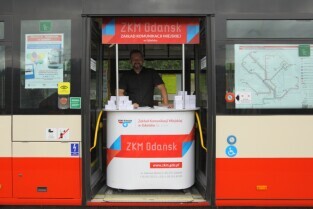 Nowoczesne i zabytkowe autobusy ZKM, muzyka, konkursy i atrakcje dla najmłodszych - w tym malowanie buziek dla dzieci i pokazy baniek gigantów na festynie komunikacyjnym na Pętli Siedlce. Nz Wiceprezydent Gdańska Piotr Grzelak.