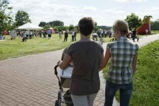 Festyn mieszkańców Olszynki - dzielnicy Gdańska. Nz. Prezydent Gdańska rozmawia z mieszkańcami