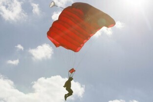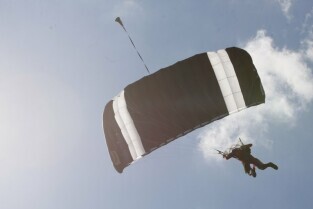 Festyn mieszkańców Olszynki - dzielnicy Gdańska. Nz. festyn uświetnił skok spadochroniarzy