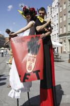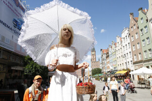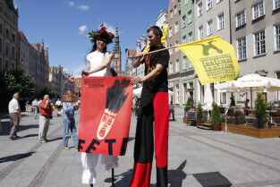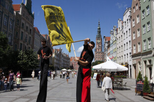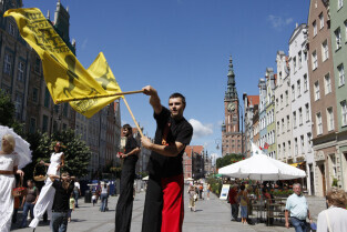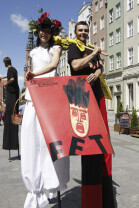 Na Długim Targu, przy Zielonej Bramie, odbyła się konferencja prasowa zapowiadajaca Festiwal Teatrów Ulicznych FETA 2008.