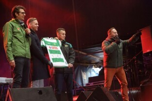 24 Finał WOŚP, Koncerty „Gdańsk dla Orkiestry – Chórem Pomagamy" i Światełko do nieba. Nz Licytacja koszulki z podpisami zawodników Lechii Gdańsk.