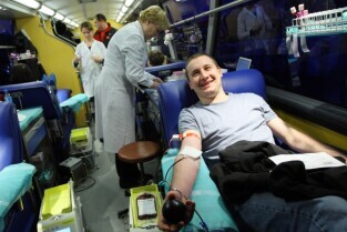 24 Finał Wielkiej Orkiestry Świątecznej Pomocy odbywa się w Gdańsku. Na Targu Węglowym można honorowo oddać krew. Nz Piotr Gapski z Gdańska