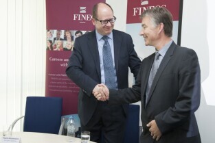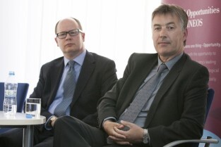 Otwarcie nowego biura Fineos - irlandzkiej firmy działającej w branży IT. Gdańsk Wrzeszcz, biurowiec w kompleksie Garnizon. Nz. od prawej: Prezes Fineos Michael Kelly, Prezydent Gdańska Paweł Adamowicz
