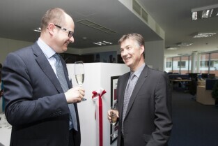 Otwarcie nowego biura Fineos - irlandzkiej firmy działającej w branży IT. Gdańsk Wrzeszcz, biurowiec w kompleksie Garnizon. Nz. Prezes Fineos Michael Kelly i Prezydent Gdańska Paweł Adamowicz