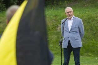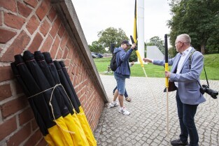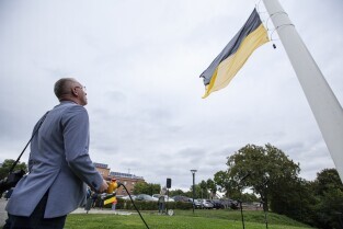 Flaga Kaszubska zawisła dzisiaj nad Gdańskiem z okazji obchodów Święta Flagi Kaszubskiej organizowanych przez Fundację kaszuby. Nz. Jacek Słomion - prezes Fundacji Kaszuby