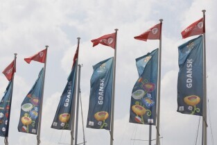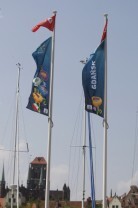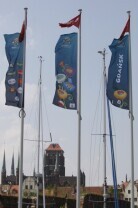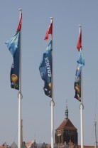 Kolorowe flagi z logotypem UEFA Euro 2012 zawisły na ulicach Gdańska. Pojawiły się one na rok przed mistrzostwami w Gdańsku. Nz. maszty z flagami przy Marinie Gdańsk