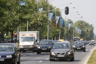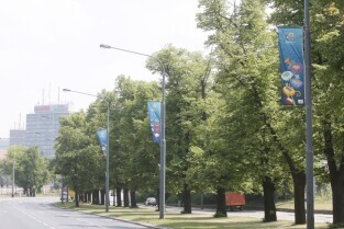 Kolorowe flagi z logotypem UEFA Euro 2012 zawisły na ulicach Gdańska. Pojawiły się one na rok przed mistrzostwami w Gdańsku. Nz. flagi na al. Zwycięstwa
