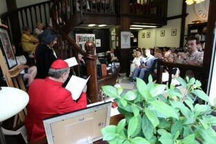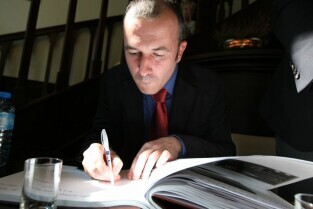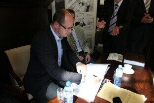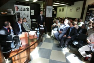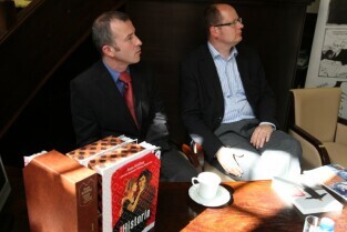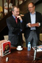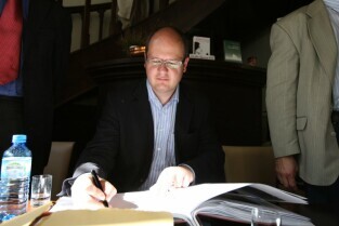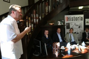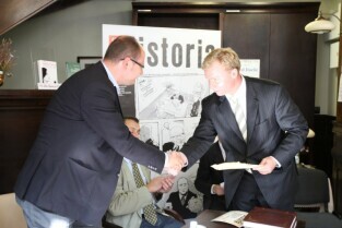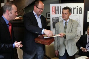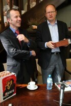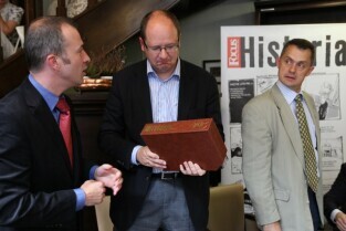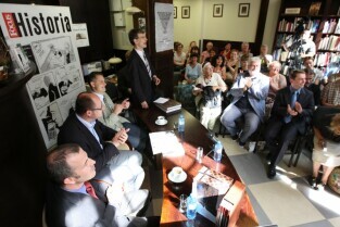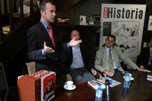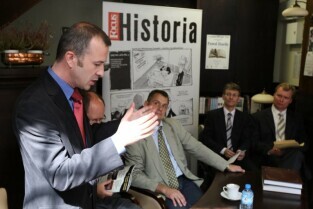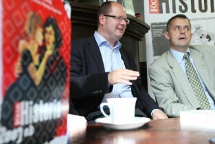 Spotkanie poświęcone legendzie według której Anna Schilling była gospodynią i kochanką Mikołaja Kopernika. Gdańsk Filia Wojewódzkiej i Miejskiej Biblioteki Publicznej, ul. Mariackiej 42. Nz. od lewej: Redaktor Naczelny Focus Historia Michał Wójcik, Prezydent Gdańska Paweł Adamowicz, Z-ca Redaktora Naczelnego Focus Historia Artur Górski