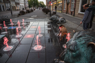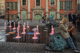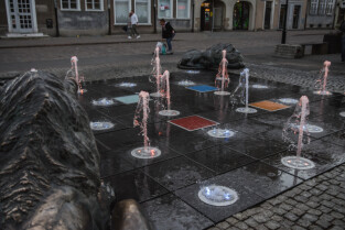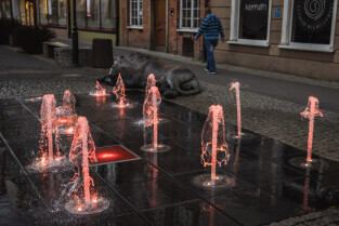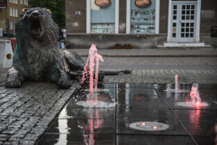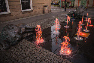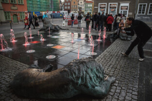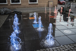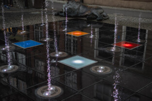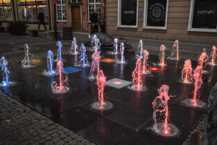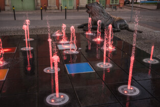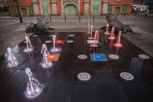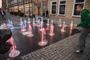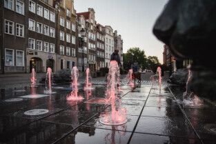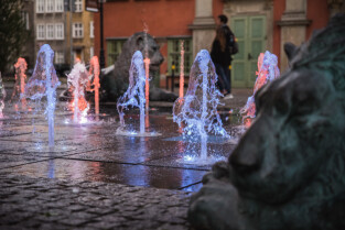 Gdańsk, ul. Grobla 1. Fontanna Czterech Kwartałów z nowymi barwnymi możliwościami