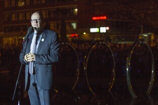 Uroczyste otwarcie Fontanny na Placu im. Jana Heweliusza w Gdańsku. Nz. Prezydent Gdańska Paweł Adamowicz