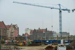 Forum Gdańsk powstaje na 6-hektarowej działce w obrębie ulic 3 Maja, Armii Krajowej, Wały Jagiellońskie i Hucisko. Widok z ul. Armii Krajowej.