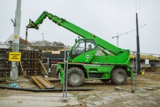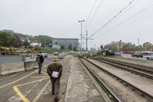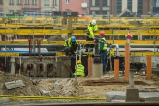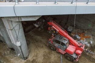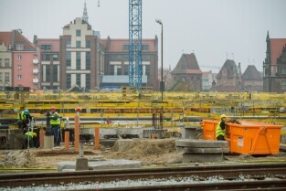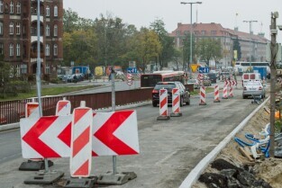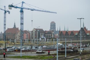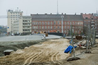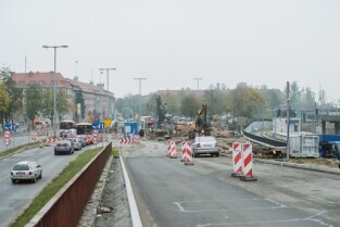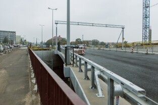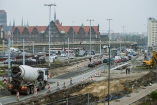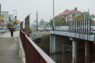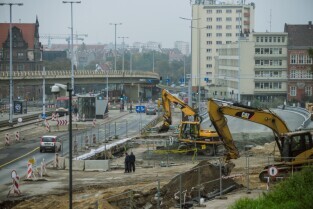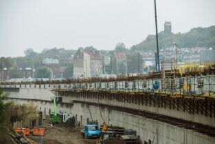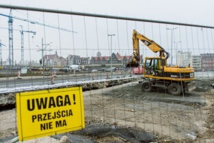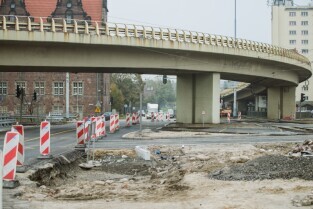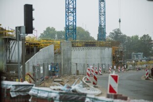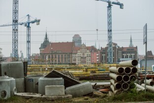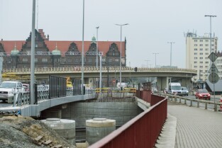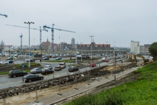 Forum Gdańsk powstaje na 6-hektarowej działce w obrębie ulic 3 Maja, Armii Krajowej, Wały Jagiellońskie i Hucisko. Widok na remontowany wiadukt na AK.